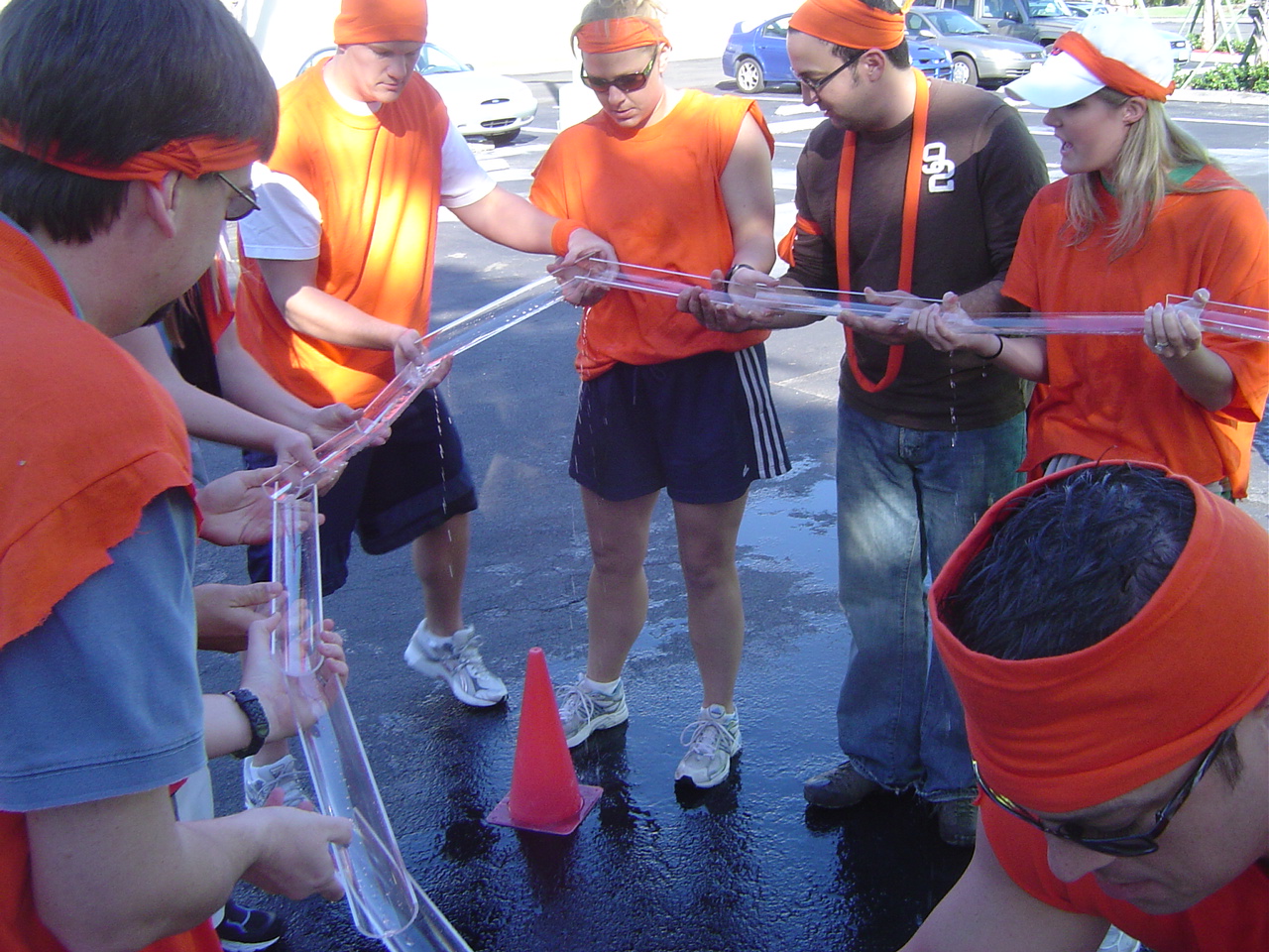 In ancient times aqueducts were used to transport precious water from one point to another. Your team will have the opportunity to construct an aqueduct using your team members and plastic tubes to create a channel for the water to flow. The most successful team is determined by the one who has the most water in their reservoir at the end of the time frame.